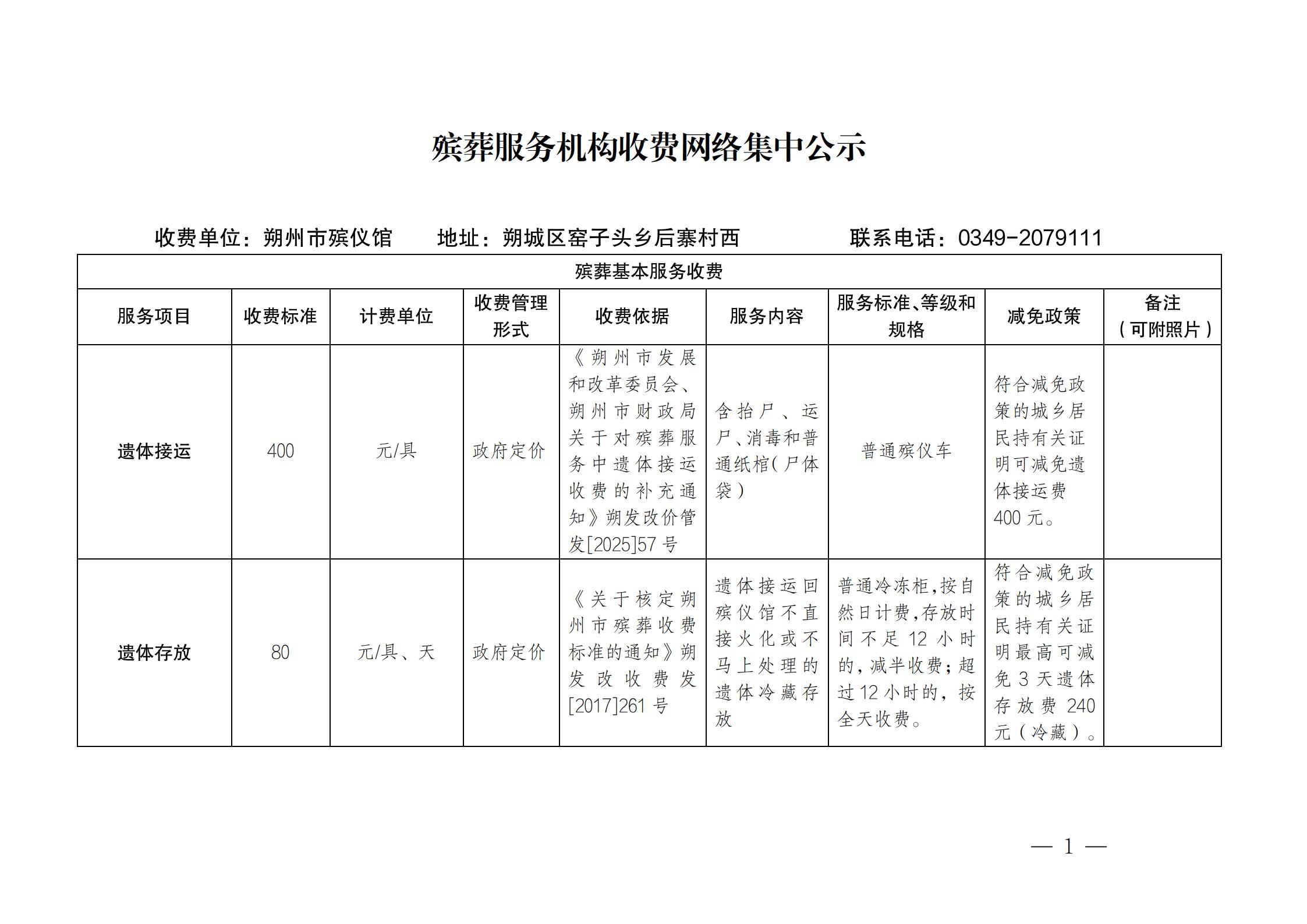 殡葬服务机构收费网络集中公示(朔州市殡仪馆)