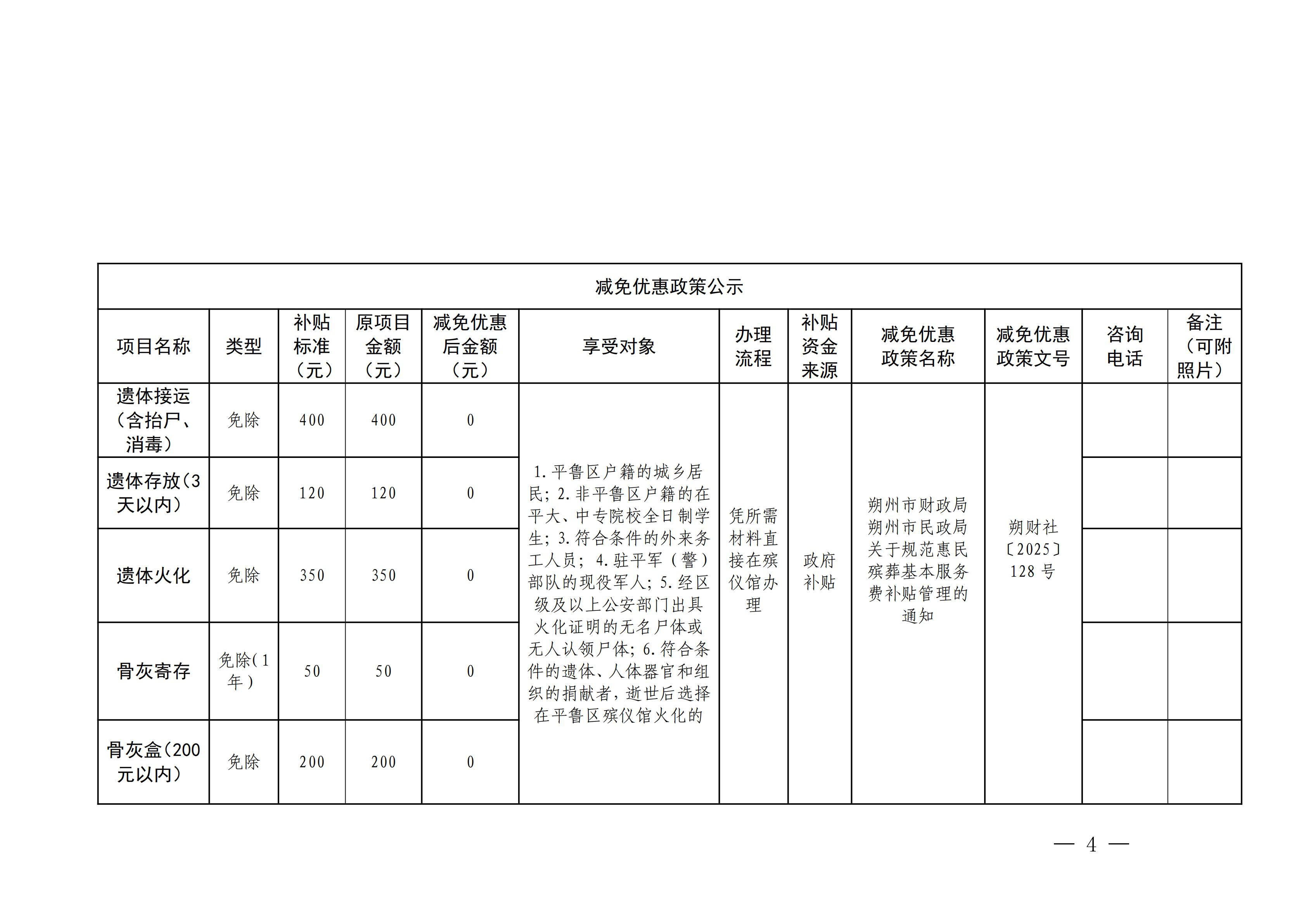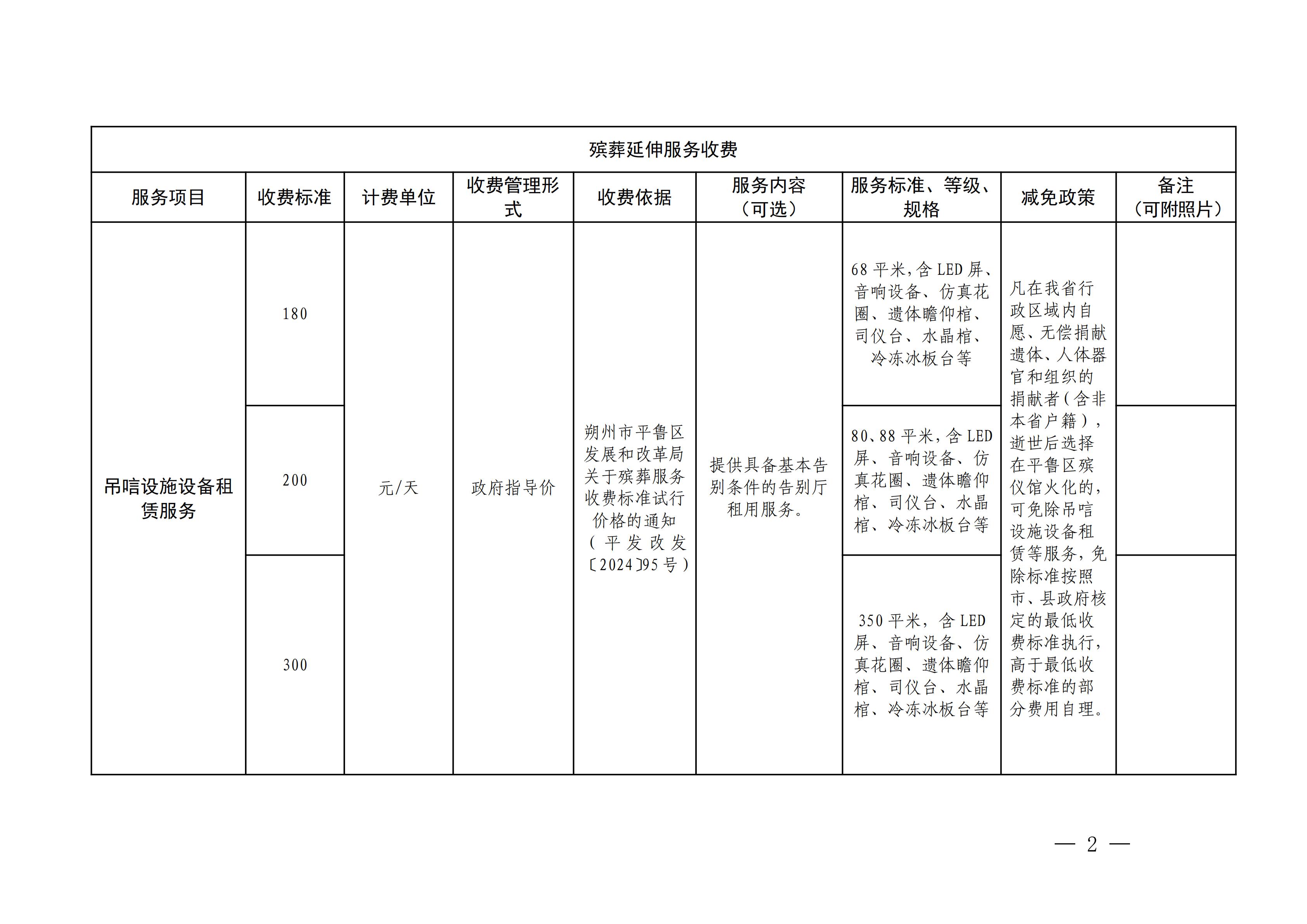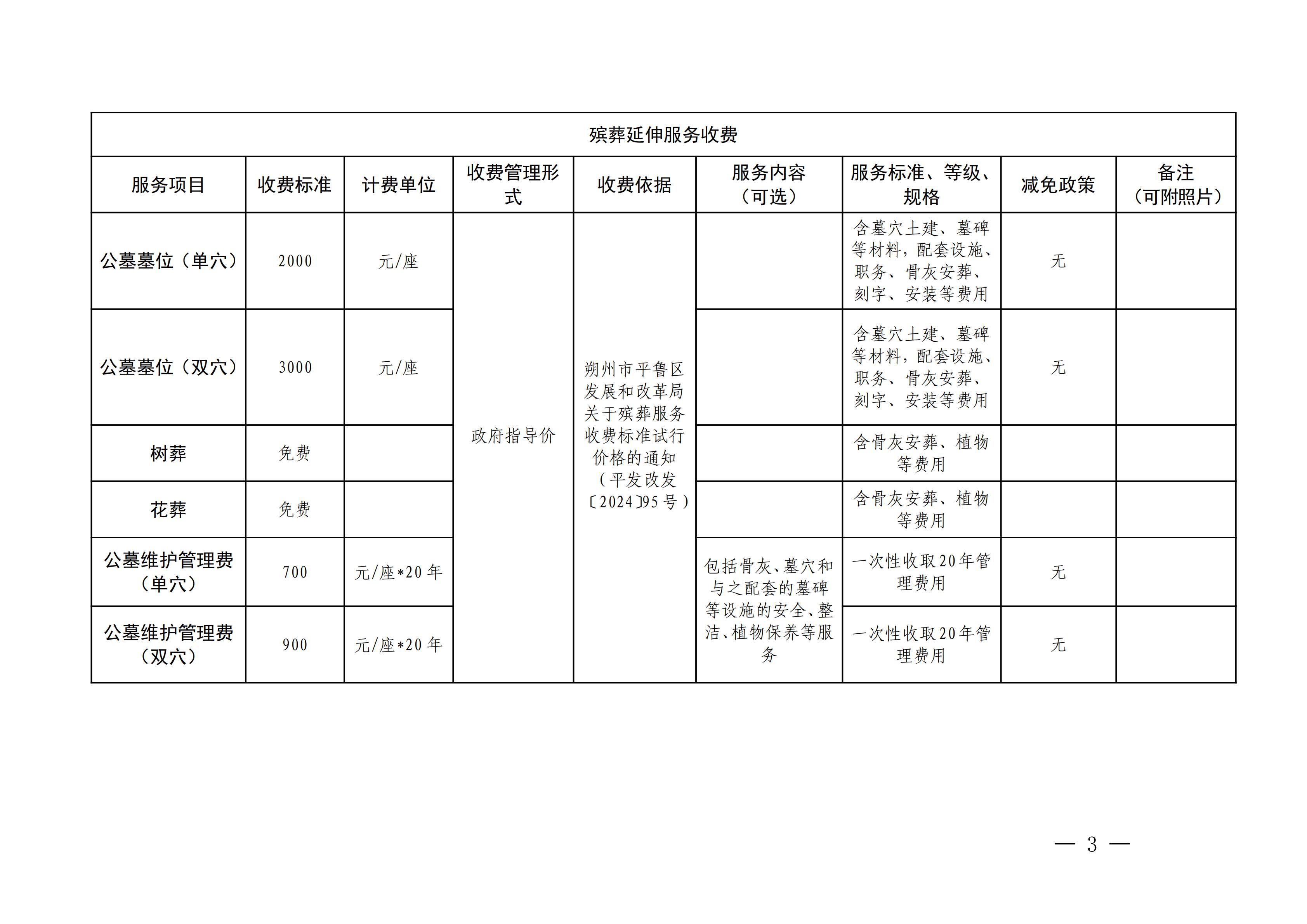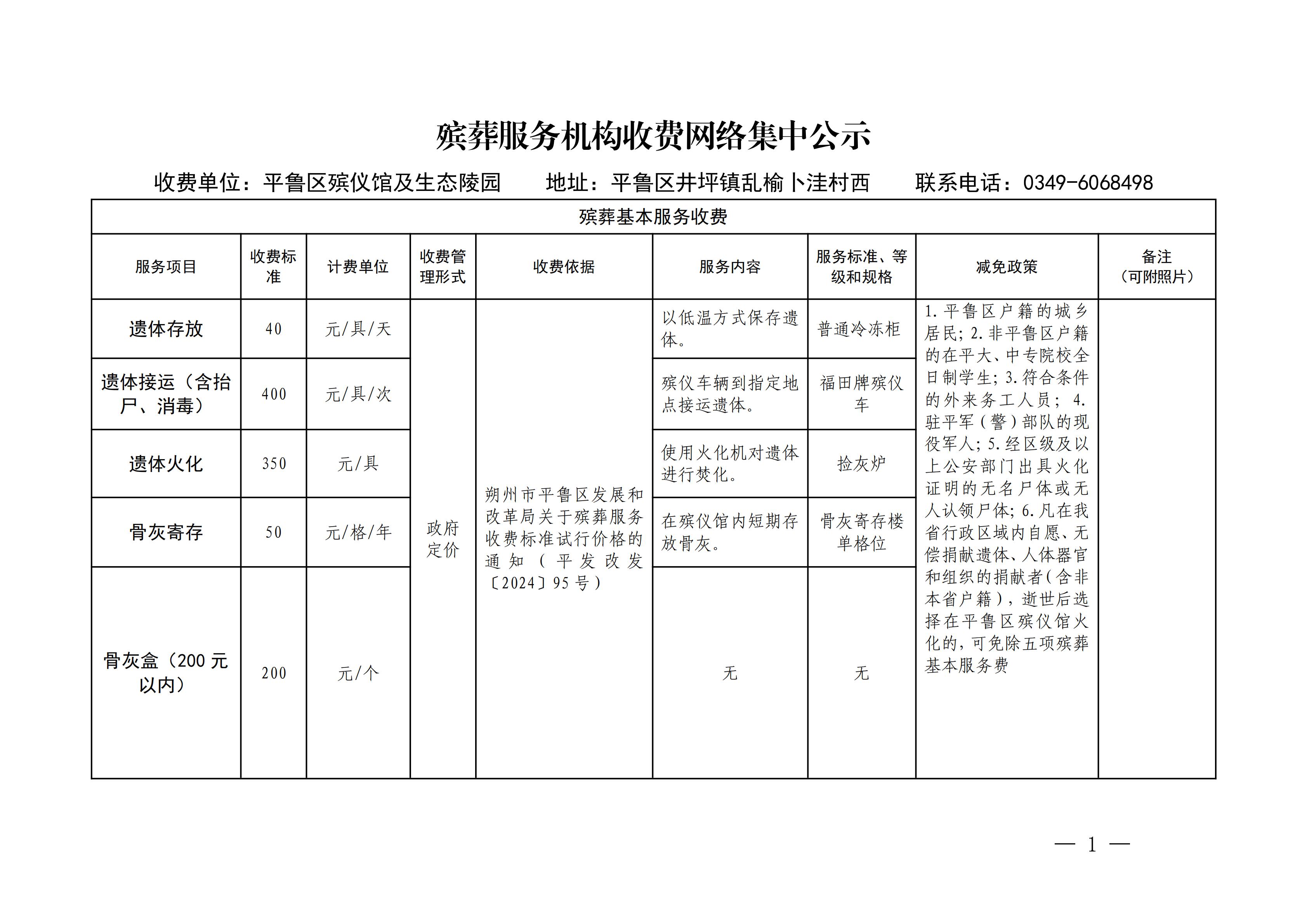 殡葬服务机构收费网络集中公示(平鲁区殡仪馆及生态陵园)