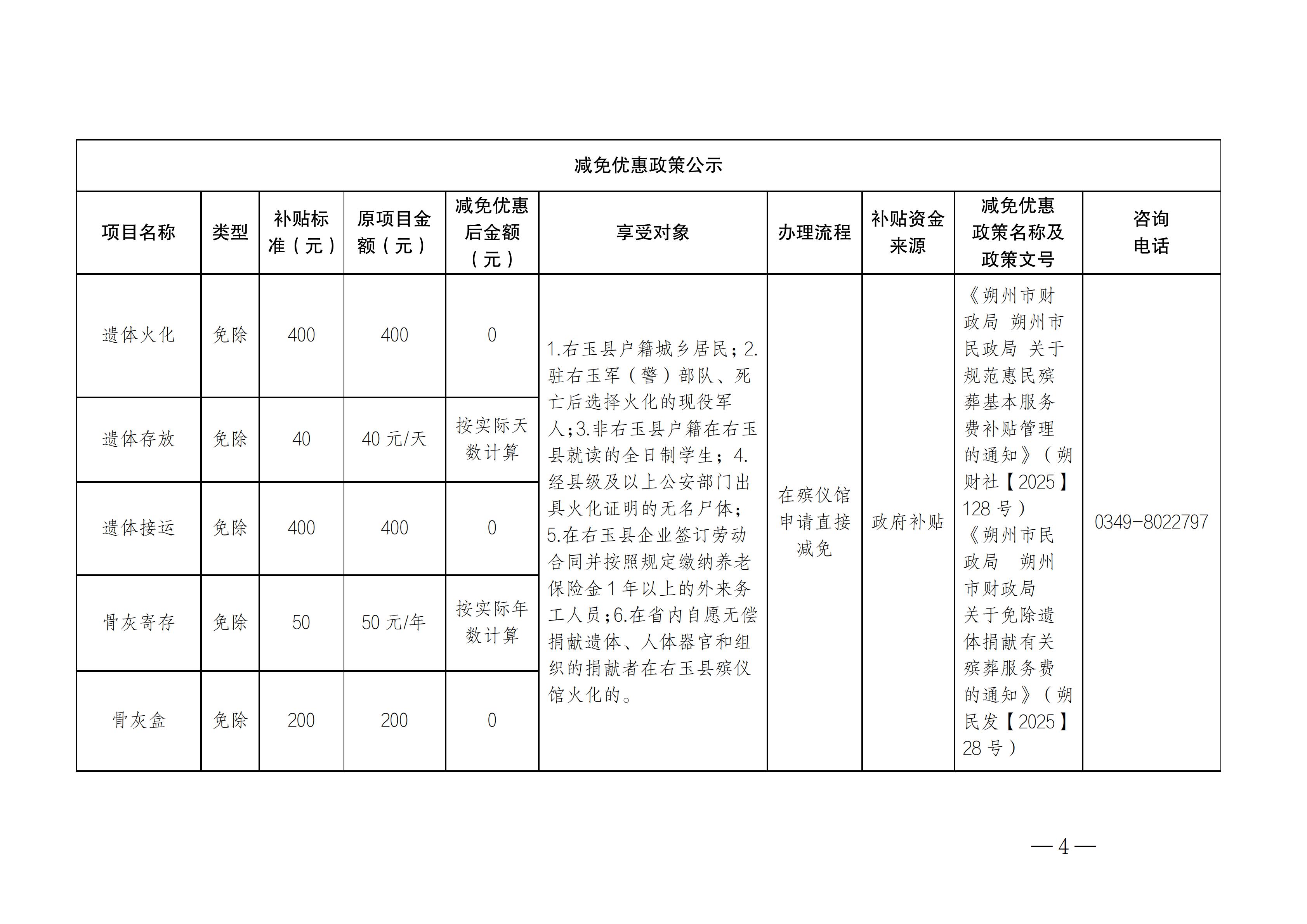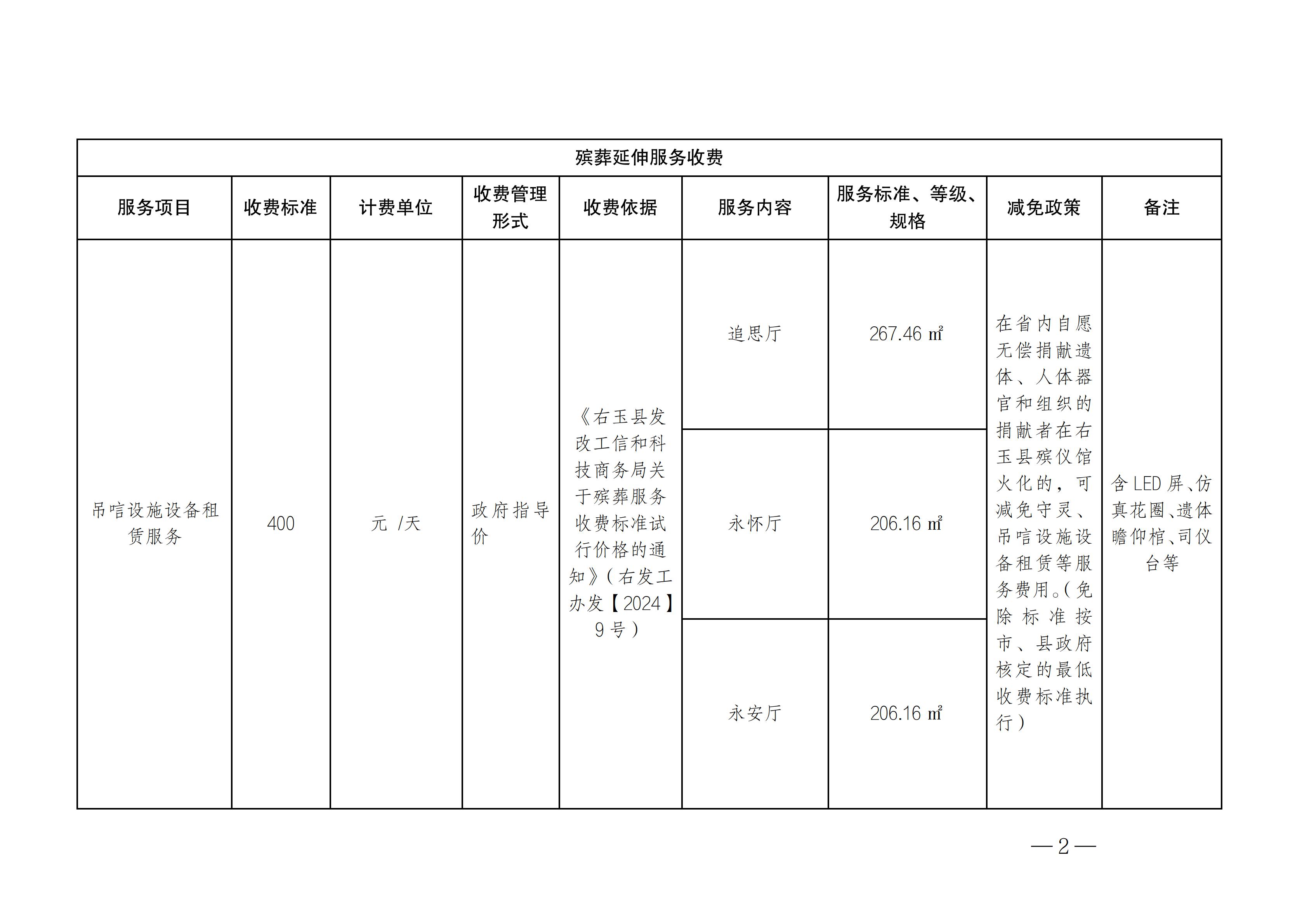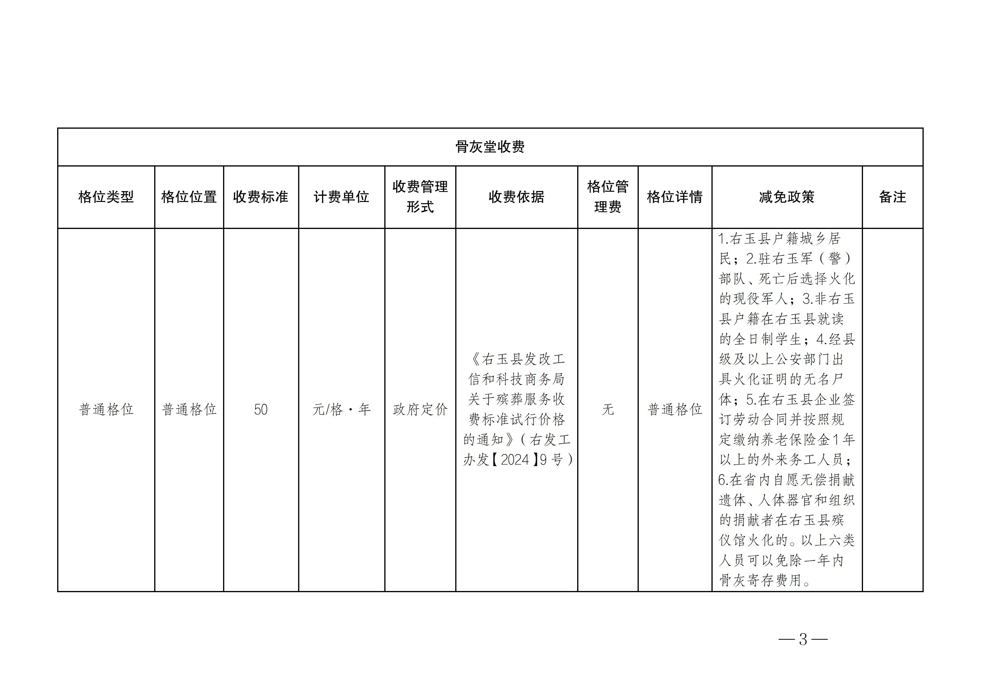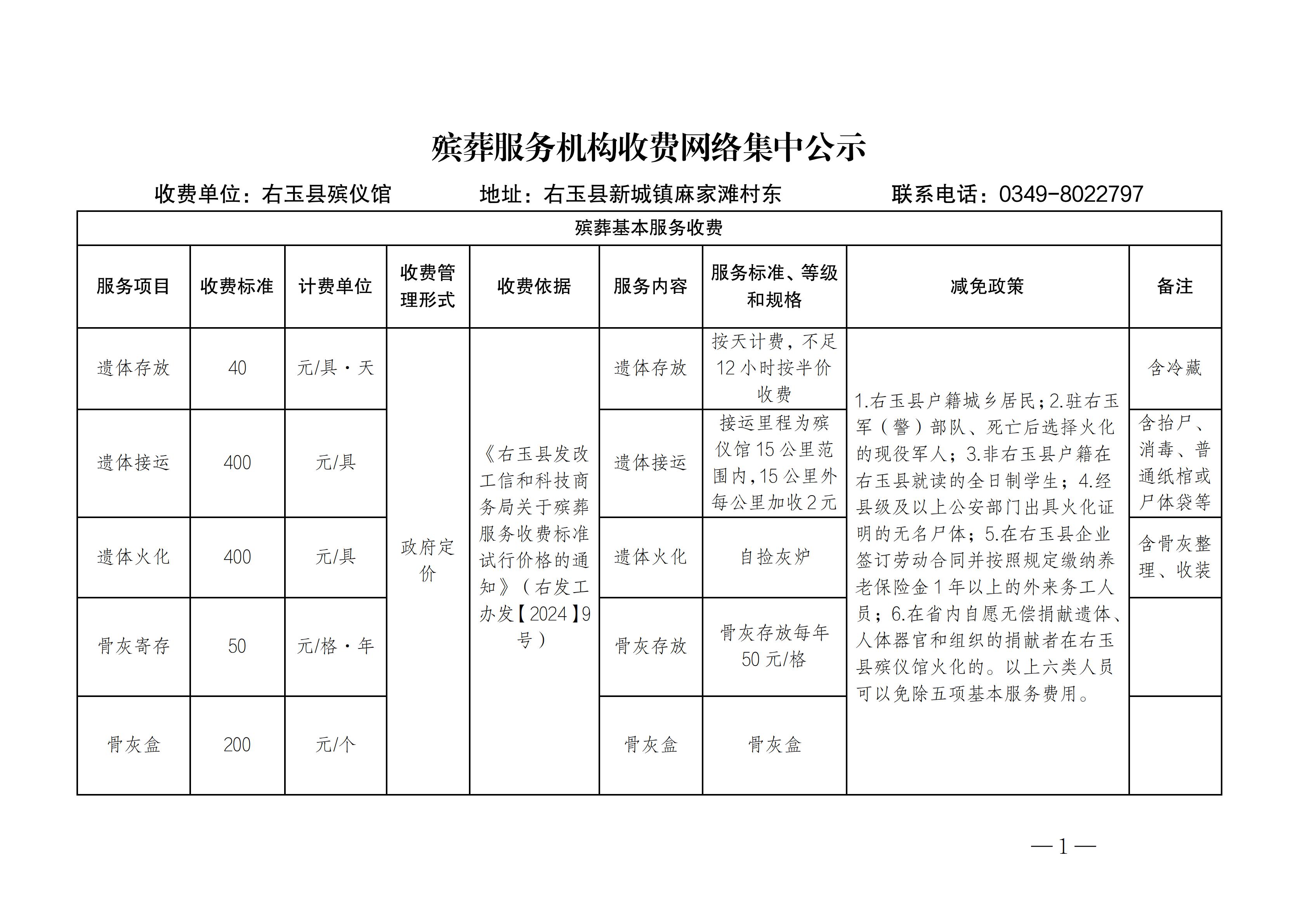 殡葬服务机构收费网络集中公示(右玉县殡仪馆)