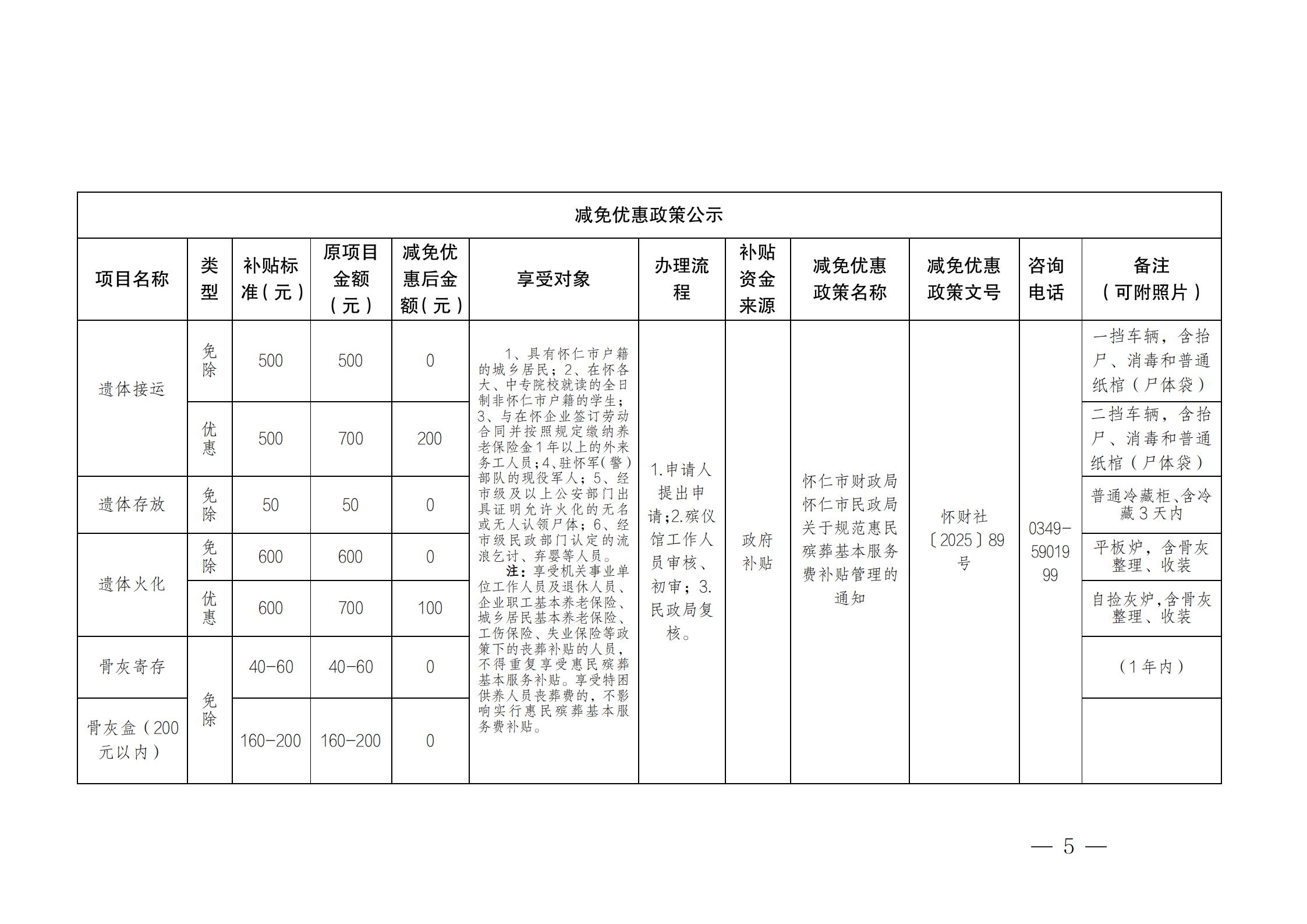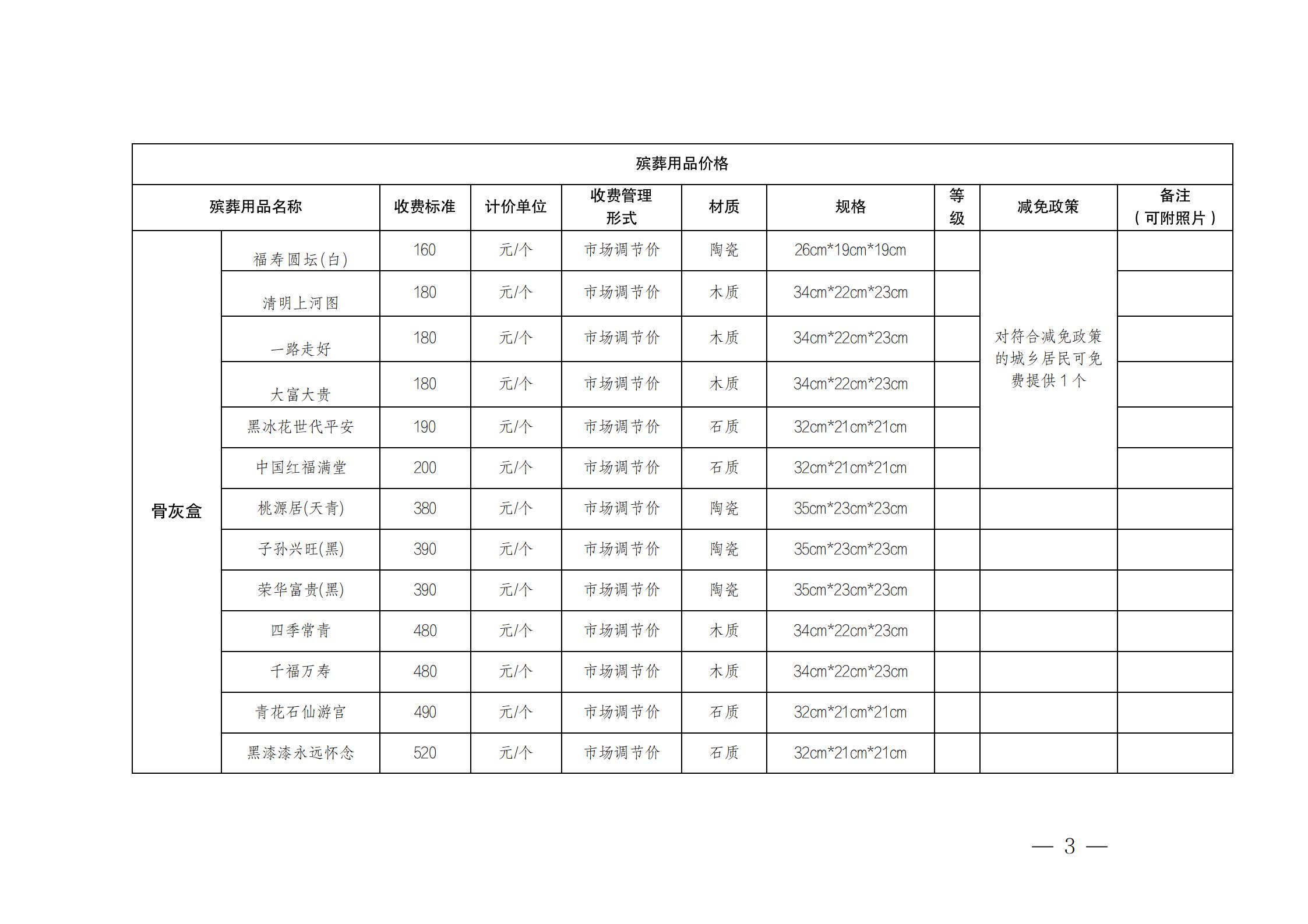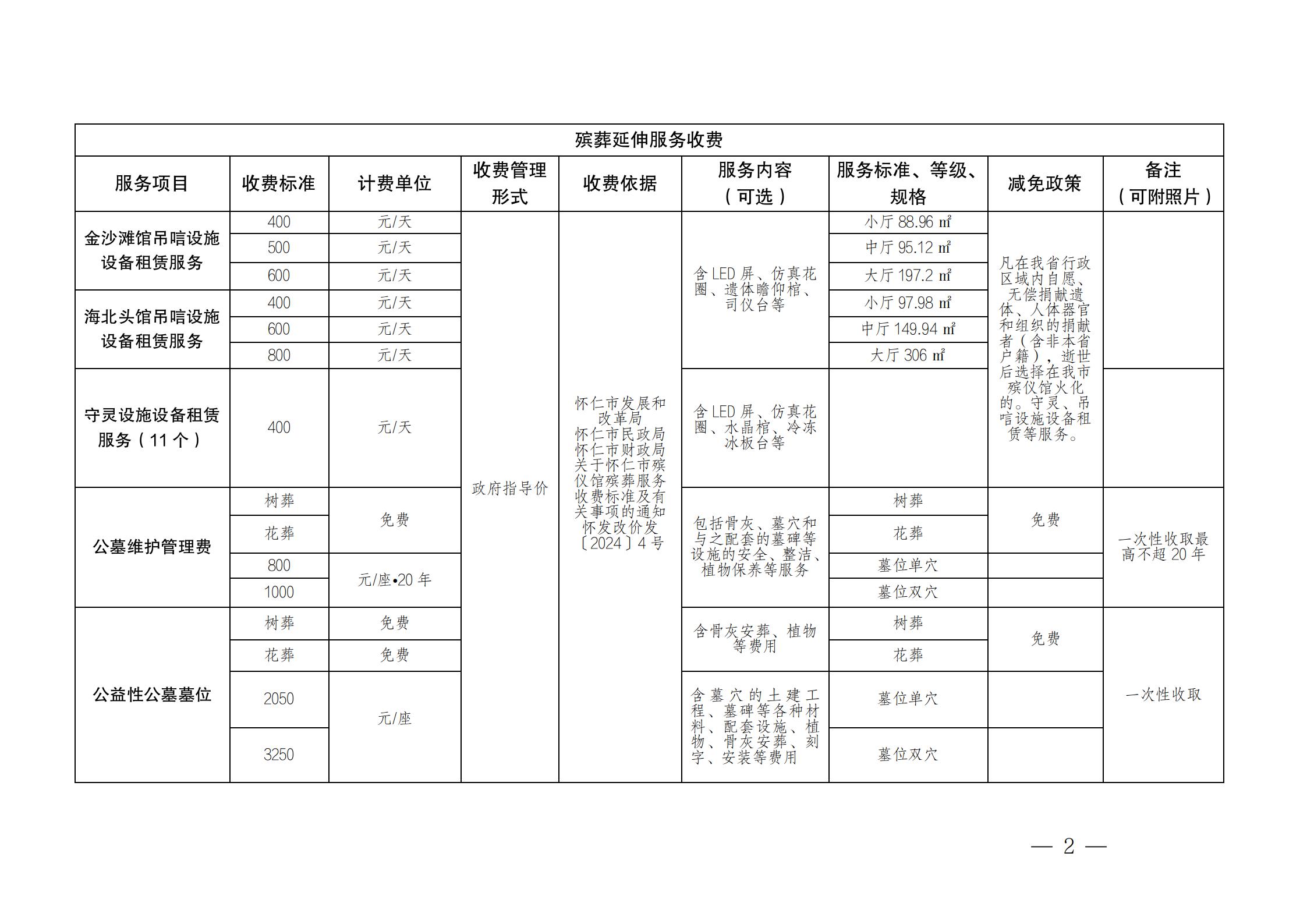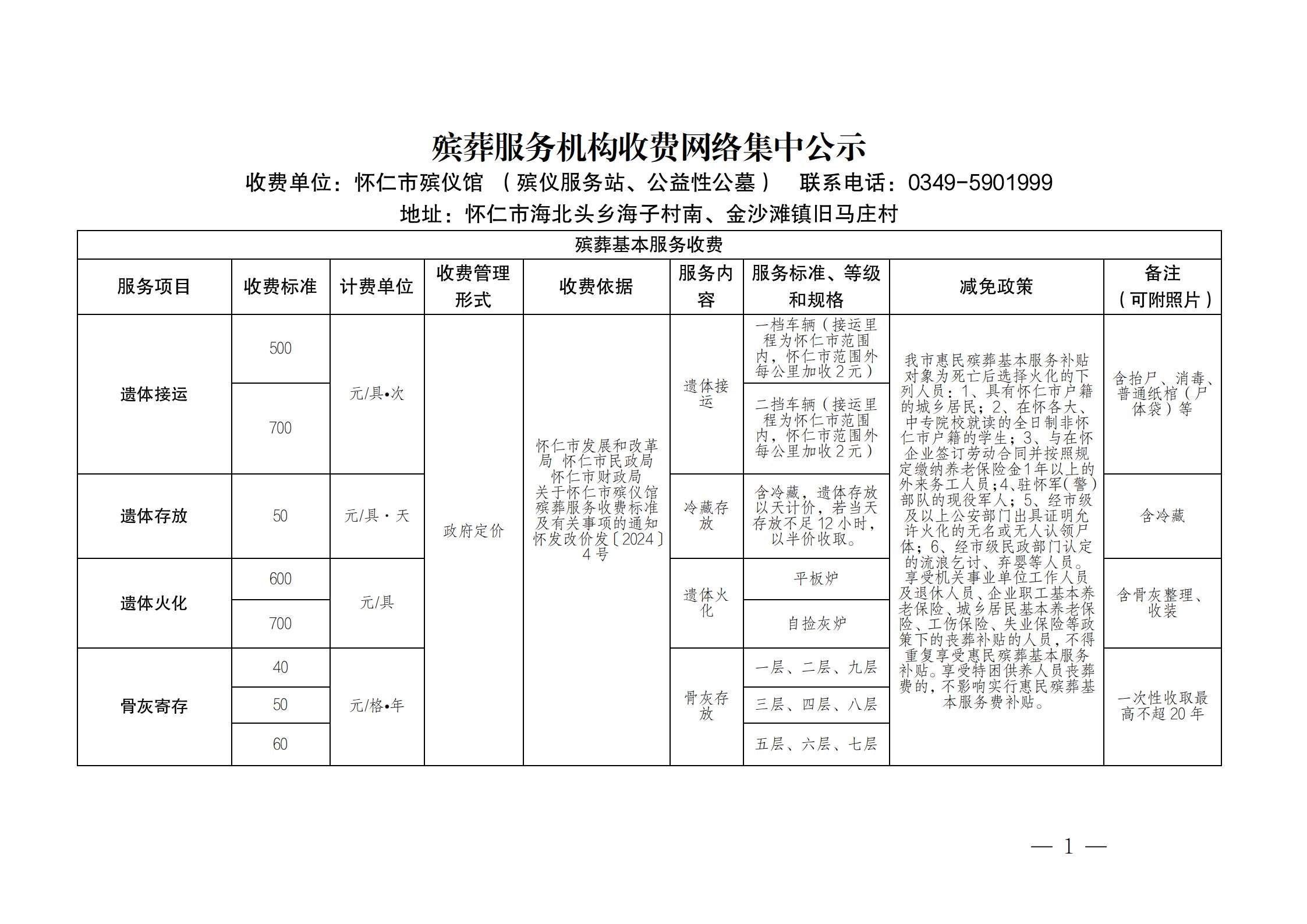 殡葬服务机构收费网络集中公示(怀仁市殡仪馆)