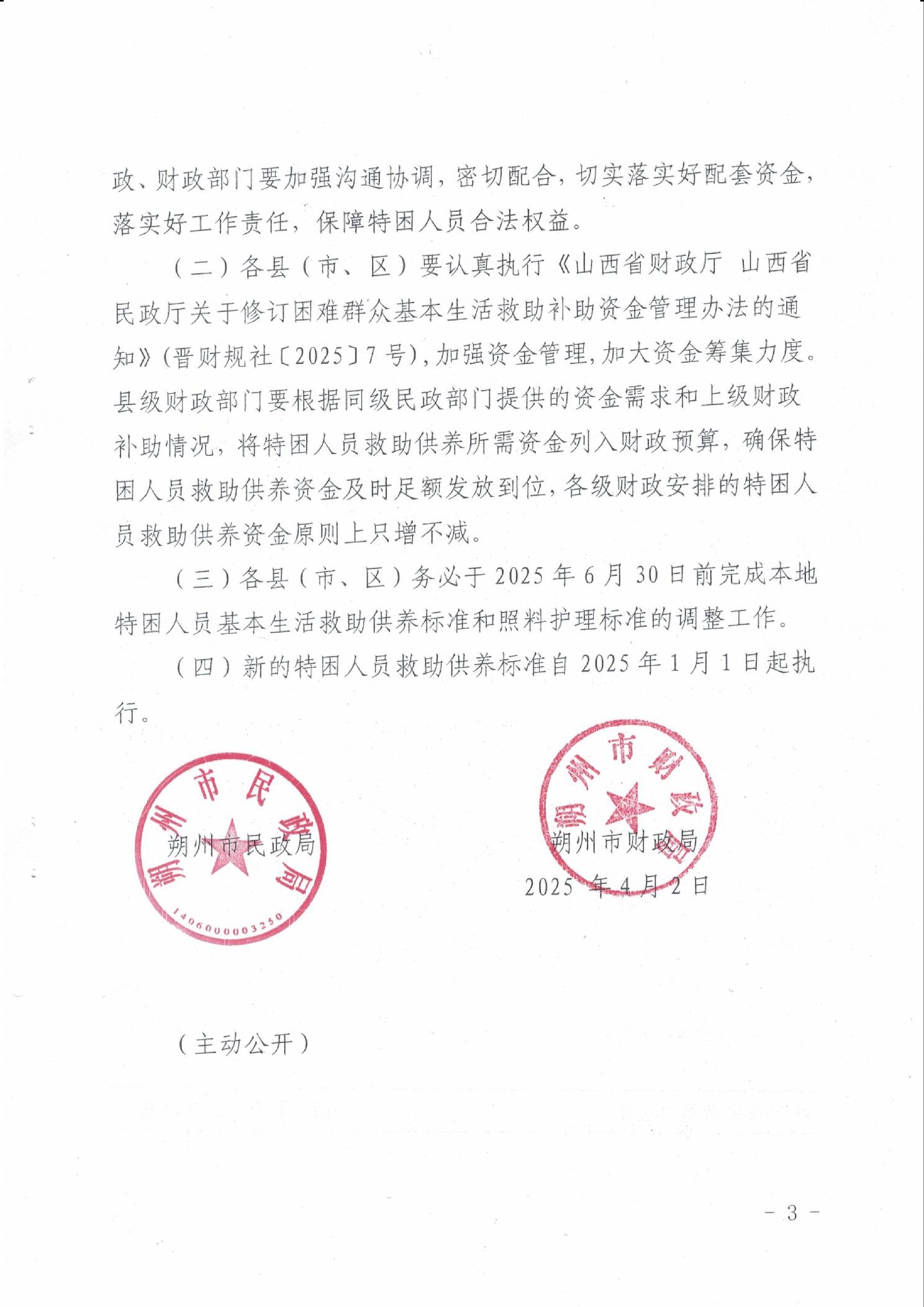 朔州市民政局 朔州市财政局关于提高特困人员救助供养标准的通知